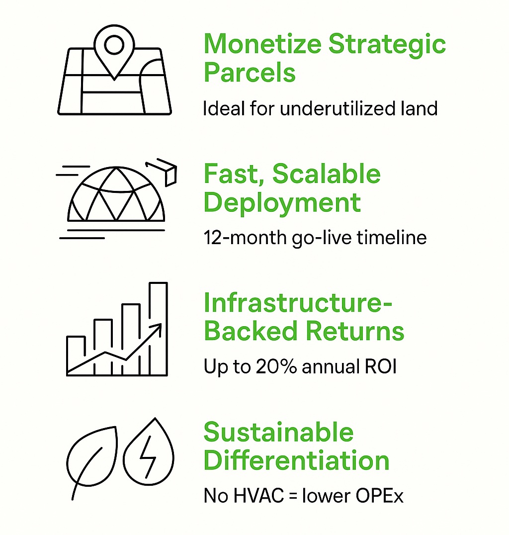 Whether you’re scaling AI workloads, closing the digital divide, or deploying at the edge—ServerDomes offers modular, high-performance infrastructure that’s ready in under 12 months and engineered for sustainability.